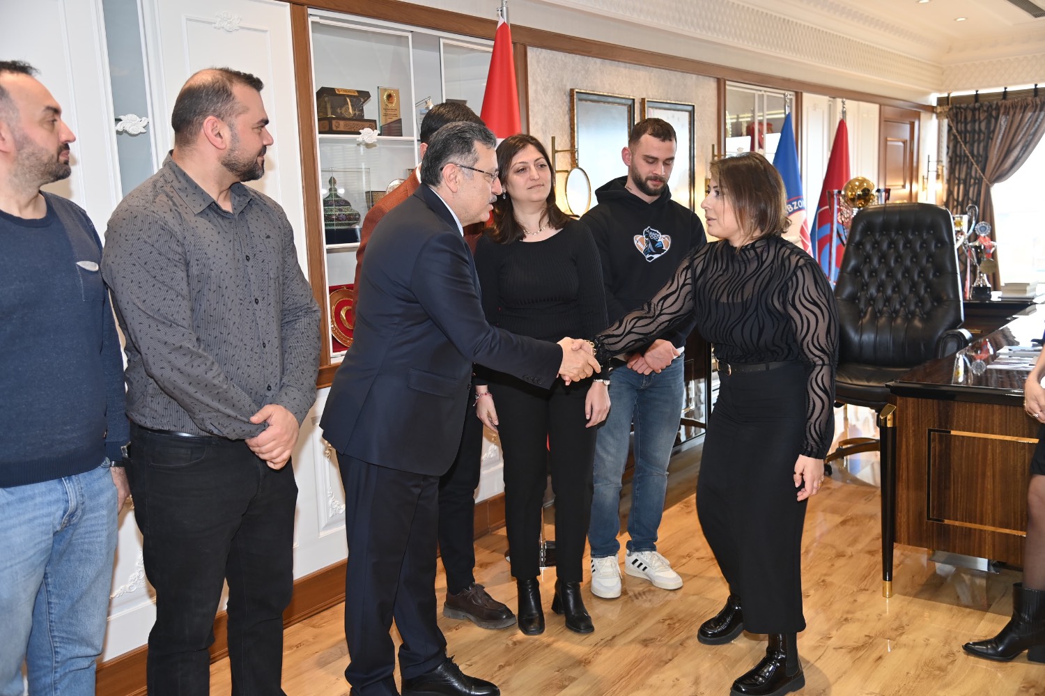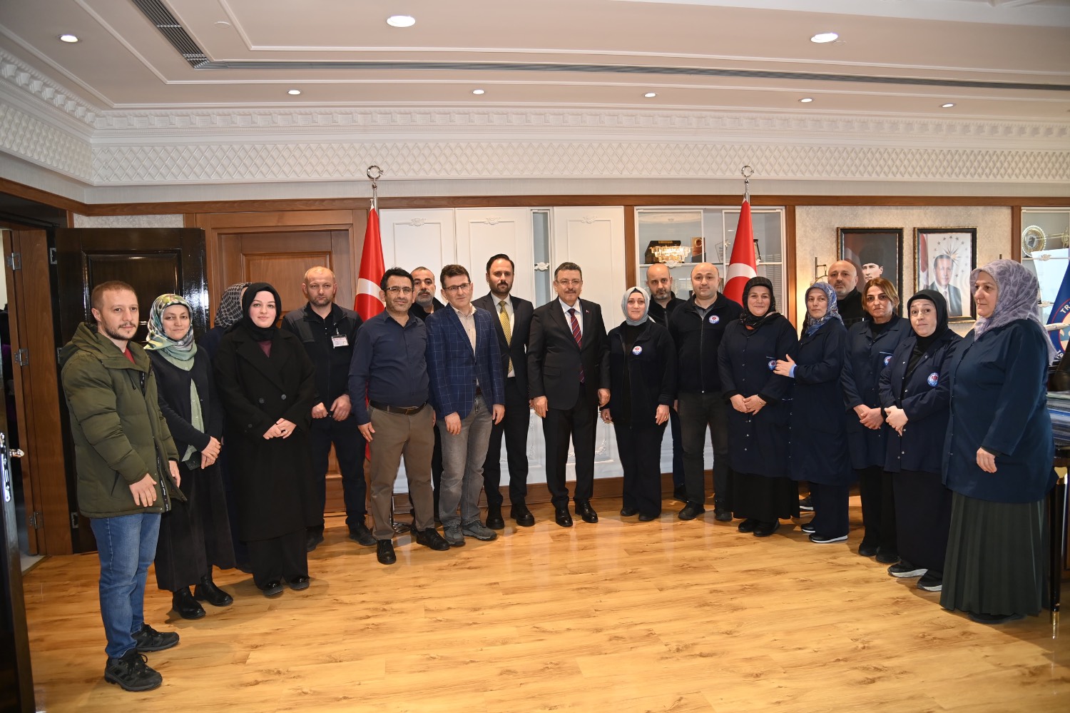 Trabzon Büyükşehir Belediye Başkanı Ahmet Metin Genç, Ramazan Bayramı öncesinde belediye personeli ile bir araya gelerek bayram sevincini paylaştı. Başkanlık makamında personel ile tek tek bayramlaşan Başkan Genç, günün anısına herkesle fotoğraf çektirdi.