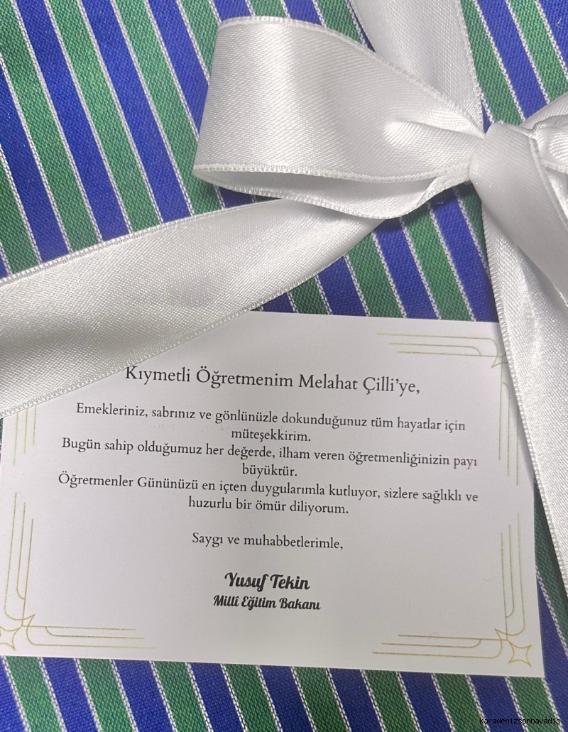 Ziyarette, Bakanının selamları ve hediyeleri takdim edilerek Melahat öğretmenimizin Öğretmenler Günü Bakan adına en içten dileklerle kutlandı.