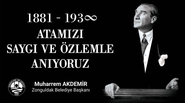 Zonguldak Belediye Başkanı Muharrem Akdemir, Türkiye Cumhuriyet’inin Kurucusu Ulu Önder Gazi Mustafa Kemal Atatürk’ün aramızdan ayrılışının 80’inci yıldönümünde onu bir kez daha özlem, saygı ve rahmetle andığını belirtti. Belediye Başkanı Muharrem Akdemir, “Atatürk, tüm hayatını milletine adamış, Kurtuluş Savaşı'yla kazandığı mutlak bir zaferle tarihine yön vermiş, bilgi ve bilinçle özümsenmiş icraatlarıyla da ülkeye aydınlık bir geleceğin kapılarını aralamış büyük bir dünya lideridir. Atatürk’ün en büyük eseri, kurucusu ve lideri olduğu, milletimizle el ele geliştirdiği Cumhuriyetimizdir.” dedi.
