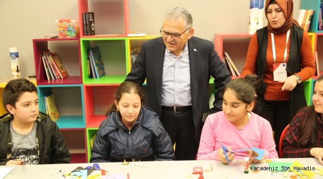 Harikalar Diyarı’nda yer alan Bilim Merkezi ziyaretlerinde Başkan Büyükkılıç, atölye faaliyetinde olan çocuklarla sohbet ederek yaptıkları çalışmalar hakkında bilgiler aldı.