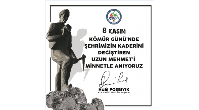 Kdz. Ereğli Belediye Başkanı Halil Posbıyık, 8 Kasım Uzun Mehmet’i Anma ve Kömür Günü nedeniyle mesaj yayımlayarak Uzun Mehmet’i ve maden şehitlerini andı.
