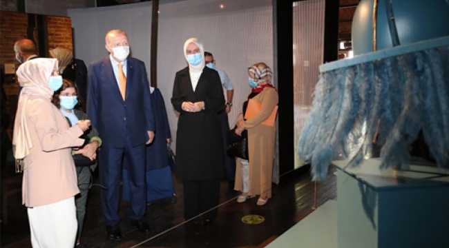 Cumhurbaşkanı Recep Tayyip Erdoğan, Kadın ve Demokrasi Derneği (KADEM) tarafından Topkapı Sarayı Darphane-i Amire Binası'nda düzenlenen "Böyle Daha Güzelsin" adlı sergiyi gezdi.
