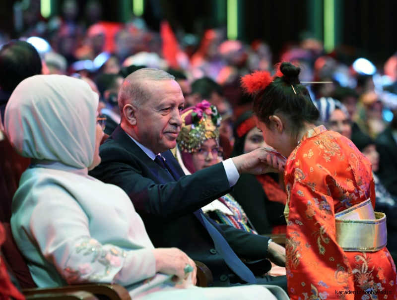 Cumhurbaşkanı Recep Tayyip Erdoğan eşi Emine Erdoğan ile birlikte, Beştepe Millet Kongre ve Kültür Merkezi’nde düzenlenen TRT 48. Uluslararası 23 Nisan Çocuk Şenliği Gala Programı’na katılarak bir konuşma yaptı.
