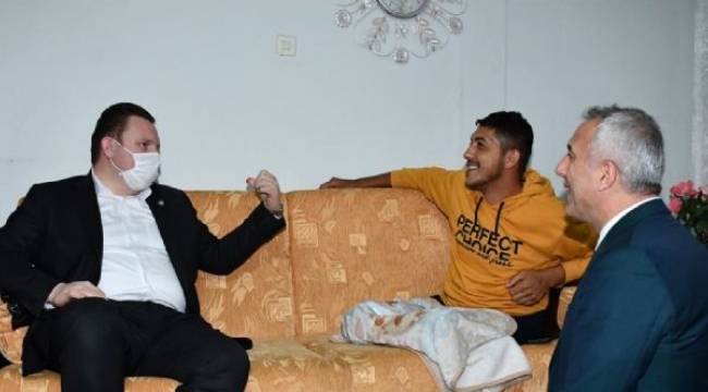 Havai fişeklerin imhası sırasında meydana gelen patlamada yaralanan Hendek Belediyesi personeli Fatih Üretmen’i evinde ziyaret eden MHP Grup Başkanvekili, Sakarya Milletvekili M.Levent Bülbül, “Kardeşimizin morali hayli yüksek. Bizler de Belediyemiz de her zaman yanındayız” dedi.