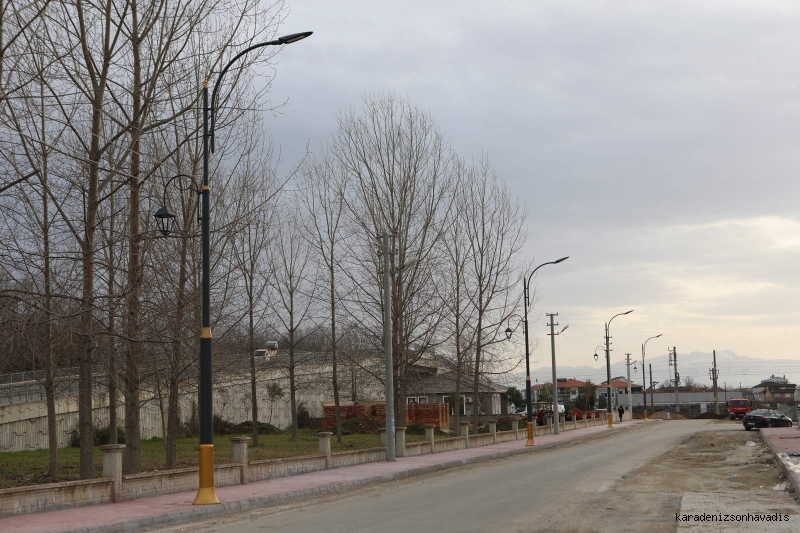 Cadde genelinde kaldırım çalışmaları ile otopark alanı tamamlanırken, aydınlatma direklerinin montajı sürüyor. Rekreasyon çalışmaları kapsamında ise toprak serim ve tesviye işlemleri devam ediyor.