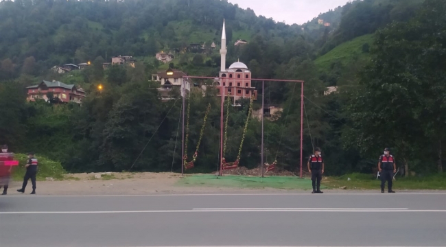 Çamlıhemşin ilçesi Behice köyü mevkii Fırtına Deresi üzerinde kaçak olarak inşa edilen salıncaklar yıkıldı.