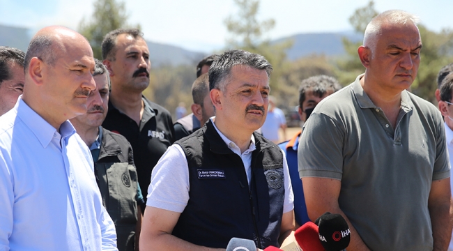 Muğla'nın Milas ilçesinde oluşturulan Yangın Koordinasyon Merkezi'nde, Kültür ve Turizm Bakanı Mehmet Ersoy ve Tarım ve Orman Bakanı Bekir Pakdemirli ile basın açıklaması yapan Soylu, yaklaşık 4 gündür Antalya'da olduklarını, dün akşam ve bu sabah Ersoy ve Pakdemirli'yle beraber karadan ve havadan bir defa daha değerlendirme yaptıklarını belirtti.