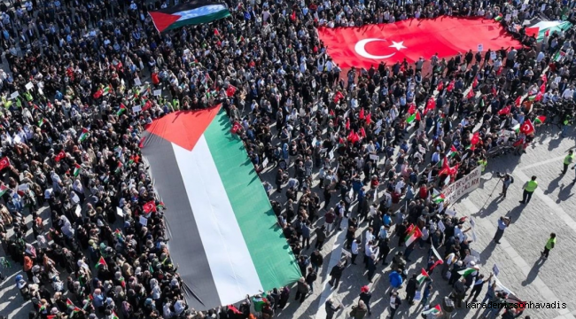 Camilerin avluları ve çevresinde toplanan vatandaşların Türk ve Filistin bayrakları taşıdığı görüldü.