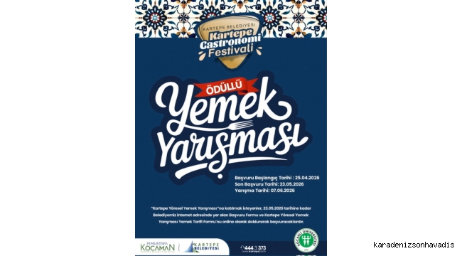 “Kartepe Gastronomi Festivali Yemek Yarışması”na katılmak isteyenler, 23 Mayıs 2026 tarihine kadar Kartepe Belediyesi’nin https://yarisma.kartepe.bel.tr internet adresi üzerinden başvuru yapabilecek. Adayların, sistemde yer alan Başvuru Formu ile Yemek Tarifi Formunu eksiksiz doldurmaları, isim, soy isim ve iletişim bilgilerini girmeleri ve hazırladıkları yemeklere ait görselleri yüklemeleri gerekiyor.