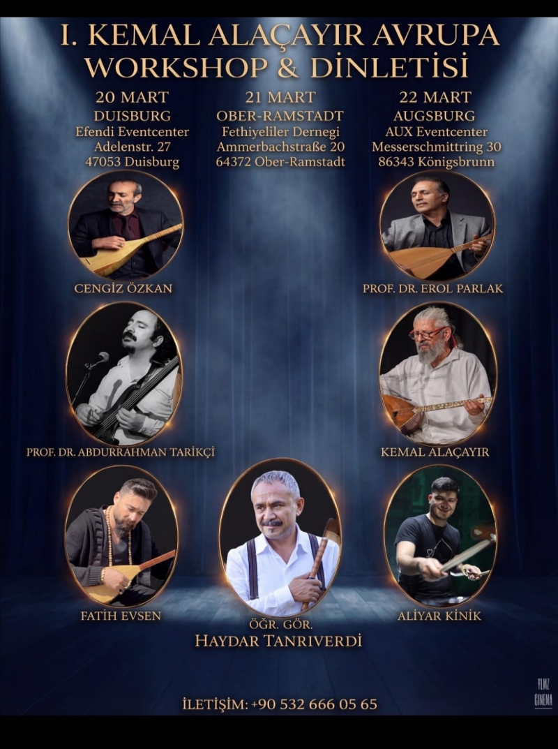 Bağlama virtüözü ünlü müzisyen Kemal Alaçayır Antalya ve İzmirde gerçekleştirdiği müzik kampı sonrası, elde ettiği başarı ve ilgiden sonra yoluna arkadaşlarıyla büyük adımlarla devam ediyor. Almanya’dan başlatacağı 1. KEMAL ALAÇAYIR AVRUPA WORKSHOP&KONSER organizasyonuyla yeni bir yolculuğa çıkarken bu çalışmayı dünya çapında yaymayı hedefliyor. Almanya’da, Duisburg, Ober-Ramstadt ve Augsburg’ta ilki yapılacak olan 1. KEMAL ALAÇAYIR AVRUPA WORKSHOP&KONSER etkinliği duyurulmaya başladığı andan itibaren büyük ilgi ile karşılandı. İlk organizasyonundan bu yana, beraber yola çıktığı hocalarla yoluna devam eden Kemal Alaçayır, Almanya’da yapılacak olan organizasyonda Cengiz Özkan, Prof. Dr. Erol Parlak, Öğrt. Gör. Dr. Haydar Tanrıverdi, Prof. Dr. Abdurrahman Tarıkçı, Doç. Dr. Aliyar Kınık ve Dr. Fatih Evsen gibi müziğin kıymetli isimleriyle sahnede olacak. Organizasyonun amacını “enstrümanında ustalaşmış hocalarımızla amatör öğrencilerin bir araya geldiği hem workshop hem de canlı dinleti formatında bir etkinlik olacak ve gün boyunca enstrüman dersleri verilecek, akşam ise hocalarımızın sahne performanslarıyla dolu bir program olacak“ ifadesiyle açıklayan Kemal Alaçayır, öğretirken ustalardan enstrümanlarıyla dinletilerle de taçlandırılacak.Kemal Alaçayır, usta-çırak ilişkisini öne çıkararak, bağlamanın derin bilgisine ve geçmişten bugüne gelen tecrübesine odaklanıyor. Bu durum, halk tarafından da çok sıcak karşılanıyor; çünkü katılımcılar, tüm gün idolü olan hocalarla birlikte aynı havayı soluyor, birikimlerinden faydalanıyor, ustalığın ve samimiyetin sahnedeki gücünü hissediyor. Yaptığı organizasyonlar, Kemal Alaçayır’ın, bağlamaya ve ustalığa olan inancını, yeni nesillere aktarma hedefini sahnede ispatladığı bir platform haline geliyor.