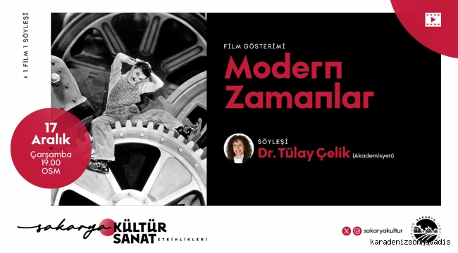 Sakarya Büyükşehir Belediyesi, Aralık kültür sanat takvimini “Modern Zamanlar” adlı film gösterimi ve söyleşi programıyla devam edecek.