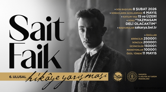 Sakarya Büyükşehir Belediyesi ile Sakarya İl Kültür ve Turizm Müdürlüğü iş birliğinde düzenlenen ödüllü 6. Ulusal Sait Faik Hikâye Yarışması için başvuru süreci sona erdi.