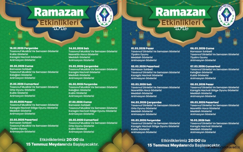 Rize Belediyesi tarafından organize edilen "2026 Ramazan Etkinlikleri", 11 ayın sultanı Ramazan'ın ruhuna uygun olarak hem ailelere hem de çocuklara unutulmaz anlar yaşatmayı hedefliyor. 15 Temmuz Demokrasi ve Cumhuriyet Meydanı'nda özel olarak kurulan dev etkinlik çadırında, geleneksel Türk tiyatrosundan tasavvuf musikisine, eğitici çocuk atölyelerinden Ramazan sohbetlerine kadar geniş kapsamlı bir program Rizelileri bekliyor.