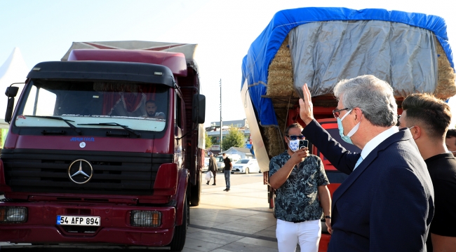 Sakarya Büyükşehir Belediyesi öncülüğünde iş insanları ve hayırsever vatandaşların katkılarıyla toplanan 2 tır dolusu yardım, 1 haftadır devam eden ve Türkiye’nin gündeminde olan orman yangınlarından zarar gören vatandaşlara ulaştırılması için yola çıktı. Demokrasi Meydanı’ndan Mersin ve Antalya’daki Yardım Toplama Merkezlerine doğru yola çıkan tırlarda su, kuru gıda, temizlik ve giyim malzemesinin yanı sıra 1 tır dolusu saman bulunuyor. Yardım Toplama Merkezlerine ulaşacak yardımlar bölgede oluşturulan Afet Koordinasyon Merkezi ekipleri tarafından ihtiyaç sahiplerine ulaştırılacak.