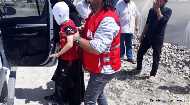 Suriye’de savaştan kaçarak sığındıkları çadır kentte soba patlaması sonucu vücudunun büyük bir bölümü yanan 6 yaşındaki Halid Hamo isimli çocuğun tedavi süreci Kızılay ekiplerinin durumu fark etmesiyle başlatıldı
