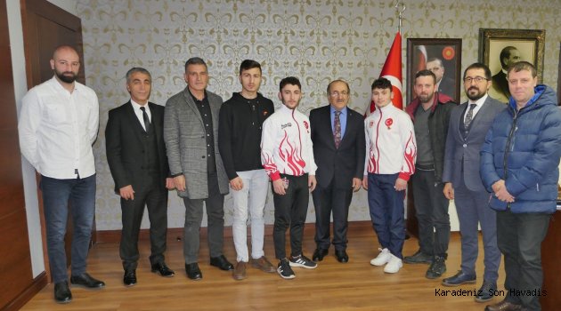 Trabzon Büyükşehir Belediye Başkanı Dr. Orhan Fevzi Gümrükçüoğlu, Büyükşehir Belediyespor Kulübünün şampiyon kickboks sporcularını altınla ödüllendirdi. Slovenya’da düzenlenen Avrupa Kickboks Şampiyonasında 57 kiloda Avrupa üçüncüsü olan Nizam Turan ile Elazığ’da düzenlenen Türkiye Kickboks Şampiyonasında 60 kiloda Türkiye şampiyonu olan Erdal Turan ve 67 kiloda Türkiye Şampiyonu olan Galip Unay ve antrenörlerini makamında kabul eden Başkan Gümrükçüoğlu, Trabzonlu sporcuların başarıları ile gurur duyduklarını söyledi. Gençliğin spora yönelmesinin toplumlar için büyük önem taşıdığını ifade eden Gümrükçüoğlu, spora ve sporcuya destek olmaya devam edeceklerini ifade etti.