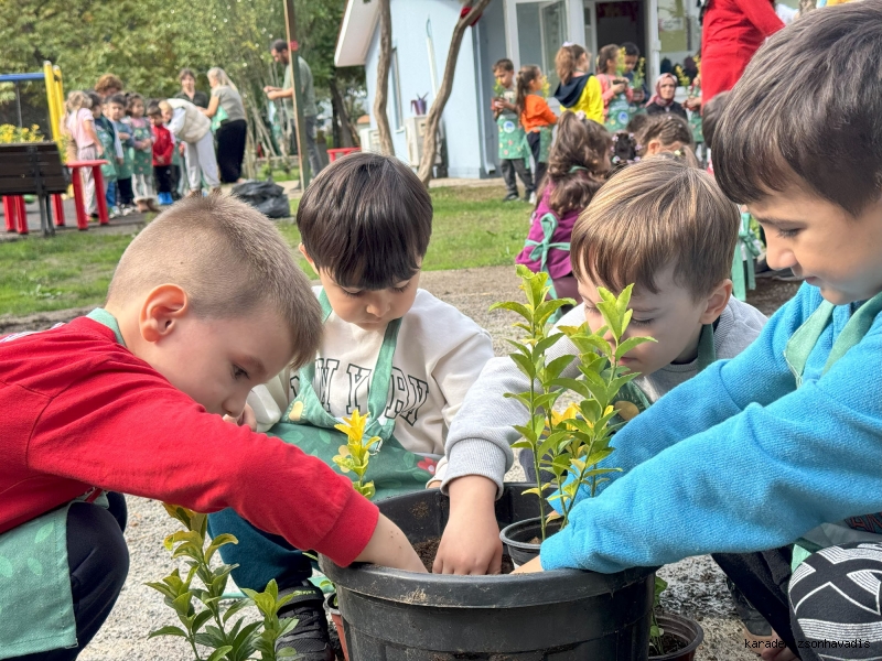 Anaokulu öğrencilerine yönelik düzenlenen projede 3 bin minik bahçıvan ektikleri fidanlarla şehrin yeşil geleceğine umut oldular.