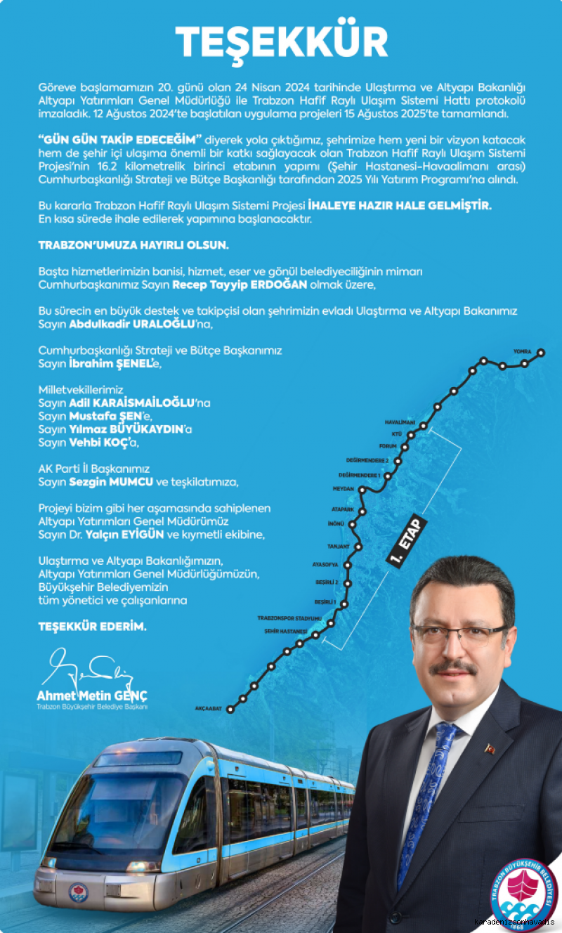 Trabzon Büyükşehir Belediye Başkanı Sayın Ahmet Metin Genç’in “Hafif Raylı Ulaşım Sistemi Projesi”yle ilgili teşekkür mesajı Trabzon Büyükşehir Belediye Başkanı Sayın Ahmet Metin Genç’in “Hafif Raylı Ulaşım Sistemi Projesi”yle ilgili teşekkür mesajı PaylaşTweetleGooglePaylaş Paylaş Tweetle Paylaş Paylaş Yazdır 04 Aralık 2025 - 20:42 YORUMLAR0 Yorum adlı kullanıcıya cevap; Bu Haberler de İlginizi Çekebilir Özel bireylerin ailelerinin endişesi son bulacak Kdz. Ereğli’nin İmar Revizyonu Mecliste Kabul Edildi Karaelmas Fotoğraf Sergisi Kilimli'de açıldı Başkan Posbıyık, Madenciler Günü’nü Kutladı Genel Başkan Basa'dan 4 Aralık Dünya Madenciler Günü Mesajı "Arifiye'deki rezerv alanın Büyükşehir'e tahsisi için süreç başladı"