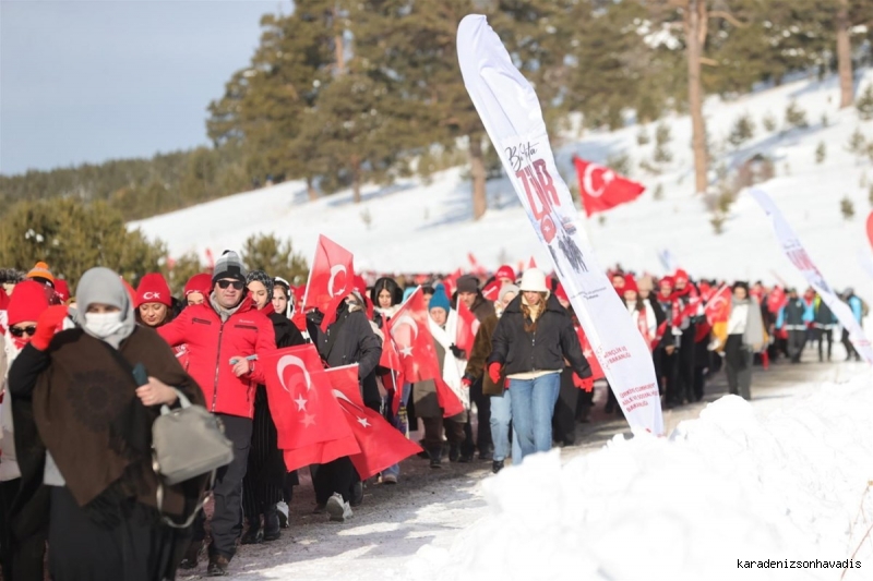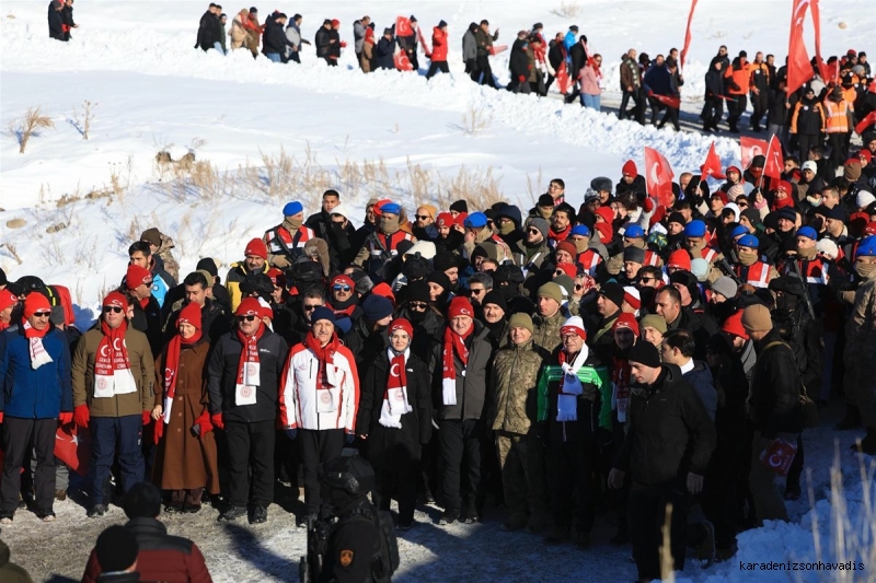 Kent merkeziyle Sarıkamış ilçesinden otobüslerle zirveye ulaşan katılımcılar, Türk bayraklarıyla yürüyerek toplanma alanına geldi. Vatandaşlar, Kızılçubuk bölgesinde şehitler anısına yapılan kardan heykellerin önünde fotoğraf çektirdi.