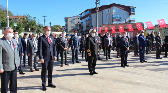 Anıta çelenk konulmasının ardından saygı duruşunda bulunuldu, İstiklal Marşı okundu.
